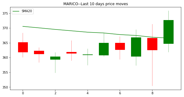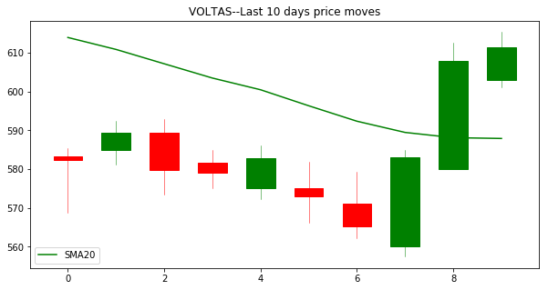 Voltas – Strong price and volume movements & Cross over of 20SMA.